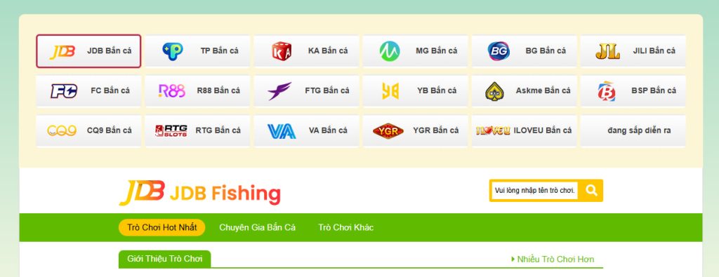 - JDB: Một trong những nhà phát hành nổi tiếng với các trò chơi bắn cá chất lượng cao, đồ họa sống động. Các game hot của JDB tại 79KING bao gồm Cai Shen Fishing và Dragon Fishing, mang đến trải nghiệm săn cá đỉnh cao với phần thưởng hấp dẫn.